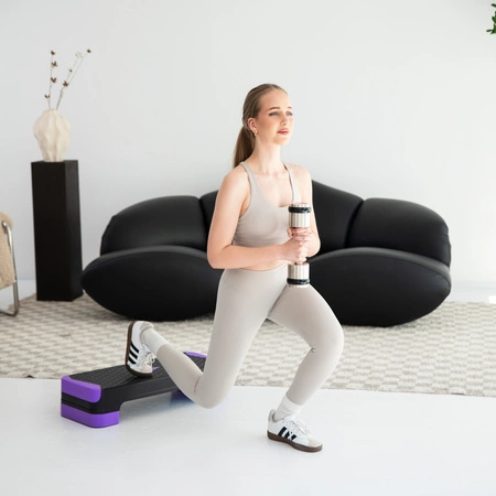Step posiada dwustopniową regulację wysokości, co pozwala dostosować intensywność treningu do aktualnego poziomu zaawansowania lub konkretnego ćwiczenia. Niższe ustawienie będzie idealne do rozgrzewki czy ćwiczeń rehabilitacyjnych, wyższe – do bardziej dynamicznych i intensywnych treningów cardio.
