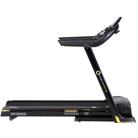 BE5856 HMS PREMIUM to bieżnia elektryczna przeznaczona do użytku domowego.Pas bieżnyUrządzenie posiada duży pas bieżny zapewniający komfortową przestrzeń do ćwiczeń. W połączeniu z system amortyzacji, który posiada, bieganie to czysta przyjemnoś