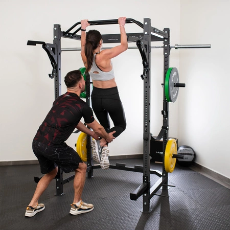 Klatka posiada wiele funkcji i możliwości regulacji, które sprawiają, że jest uniwersalna i dopasowana do indywidualnych potrzeb użytkownika. Możesz wykonywać na niej różne ćwiczenia, takie jak podciąganie, przysiady, wyciskanie, martwy ciąg, i wiele innych. Klatka umożliwia także dodawanie oporu lub asysty do ćwiczeń, dzięki gumom rozporowym, które można zamocować do specjalnych prętów.