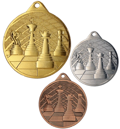 Komplet medali do szachów – zestaw eleganckich medali sportowych stworzony z myślą o turniejach szachowych, zawodach klubowych, szkołach i imprezach lokalnych. Wykonane z trwałego metalu, z miejscem na grawer lub emblemat szachowy, świetnie podkreślają osiągnięcia uczestników.