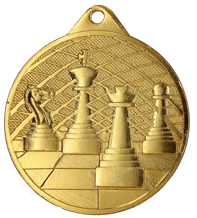Złoty medal szachowy to prestiżowa nagroda dla zwycięzcy turnieju. Wykonany z trwałego metalu, z eleganckim wykończeniem i motywem szachowym. Idealny na zawody klubowe, szkolne oraz oficjalne turnieje szachowe. Posiada miejsce na grawer lub emblemat oraz tasiemkę do zawieszenia.