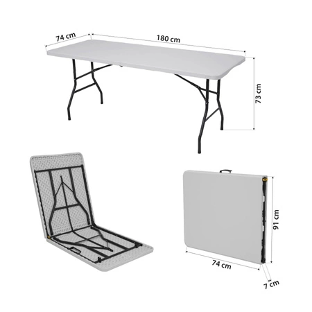 Jedną z kluczowych zalet modelu NC1618 jest jego solidna, przemyślana konstrukcja. Blat wykonano z trwałego PVC o gładkiej powierzchni, który nie tylko dobrze się prezentuje, ale jest również odporny na zabrudzenia, łatwy w czyszczeniu i odporny na działanie warunków atmosferycznych. Wzmocniona stalowa rama zapewnia stabilność stołu nawet przy większym obciążeniu. Maksymalna nośność aż do 150 kg pozwala na bezpieczne użytkowanie stołu w trakcie serwowania potraw, przechowywania naczyń czy ustawiania sprzętu podczas eventów.