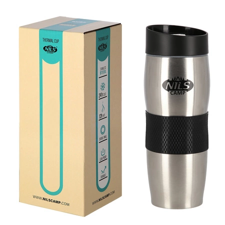 Kubek termiczny NCC05 marki Nils Camp cechuje zarówno prosta konstrukcja jak i oryginalny design! NCC05 to kubek termiczny, który wykonany jest ze stali nierdzewnej o podwójnej ściance, dzięki czemu gwarantuje utrzymanie temperatury ciepłych oraz zimnych napoi przez kilka godzin. Kubek termiczny NCC05 posiada bardzo wygodny system otwierania. Wystarczy wcisnąć przycisk otwierania i gotowe. Kubek NCC05 posiada ogumienie w części chwytnej, co ułatwia jego trzymanie i zwiększa bezpieczeństwo podczas przemieszczania się. Dużym atutem jest również to, że dolna część kubka posiada antypoślizgową gumę, co zwiększa bezpieczeństwo przed rozlaniem gorącej kawy czy herbaty podczas gdy kubek jest otwarty!