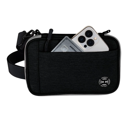 Dodatkowa, zewnętrzna komora zapinana na zamek, która jest wystarczająco duża, aby zmieścić telefon, portfel lub klucze.