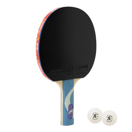 W zestawie dwie piłeczki z certyfikatem ITTF oraz sztywny pokrowiec z miejscem na piłeczki.