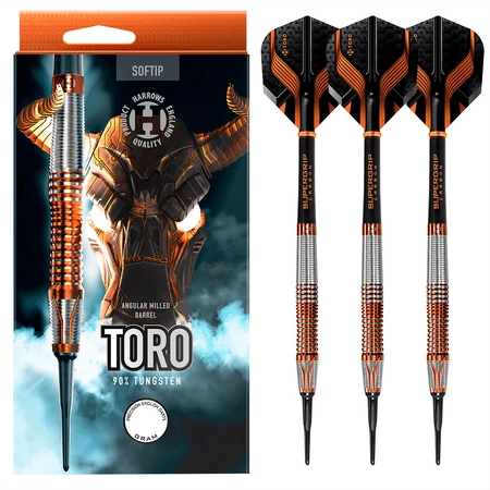 Rzutki TORO są dostarczane z shaftami midi Supergrip Carbon, nowymi lotkami TORO o grubości 100 mikronów i są wyważone z dokładnością do +/- 0,05 g.