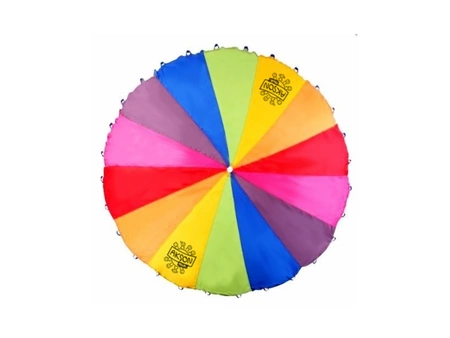 SPADOCHRON ANIMACYJNY AKSON 7 BARW Alternatywa dla chusty profesjonalnej, kształtem i wyglądem odpowiada profesjonalnej chuście animacyjnej Akson. Spadochron animacyjny Akson to tęczowa płachta animacyjna o różnych średnicy. Wykonany jest z materiału o mniejszej wytrzymałości i większej przezroczystości niż profesjonalna chusta animacyjna Akson. Materiał, z którego wykonane są spadochrony animacyjne jest lżejszy i błyszczący w świetle. Posiada kolorowe trójkąty w 7-miu kolorach (czerwony, pomarańczowy, różowy, żółty, zielony, niebieski, fioletowy), otwór w centrum oraz wzmacniane uchwyty, dzięki czemu umożliwia realizację niemal wszystkich zabaw, które można wykonywać z profesjonalną chustą animacyjną, rozmaite ich kombinacje i układy, m.in. falowanie, przebieganie pod, wrzucanie piłeczki do środka, podrzucanie kolorowych piłeczek, balonów itp. Spadochron animacyjny, podobnie jak chusta animacyjna umożliwia zabawę w każdych warunkach, integruje oraz pobudza wyobraźnię i kreatywność. Poprzez bogactwo kolorów spadochron przyciąga wzrok, wzbudza zainteresowanie i zaciekawienie wszystkich uczestników zabawy. Rozwija refleks, koordynację, umożliwiając czerpanie radości płynącej z ruchu i przebywania w grupie. Spadochron wyposażony jest w praktyczny futerał, dzięki czemu możesz zabrać go za sobą nawet na koniec świata. Liczba uchwytów: 14 sztuk - spadochron animacyjny 1,75 m 28 sztuk - spadochron animacyjny 3 m, 4 m, 5 m Średnica otworu: 8-11 cm w zależności od rozmiaru spadochronu Waga: 0,5 - 1,5 kg w zależności od rozmiaru spadochronu