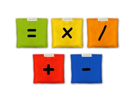 Woreczki gimnastyczne Akson ZESTAW ZNAKI MATEMATYCZNE Woreczki gimnastyczne Akson z nadrukiem to wyjątkowa pomoc w czasie zabaw animacyjnych, dydaktycznych i zajęć korekcyjno-ruchowych. Idealne jako pomoc dydaktyczna we wczesnej edukacji przy nauce m.in. cyfr, liczenia i prostych działąń matematycznych. Stanowią ważny element wyposażenia każdej placówki dydaktycznej, gimnastycznej i zabawowej. Doskonale pasuje do gier i ćwiczeń z chustą animacyjną, zabaw animacyjnych i gimnastyczno-tanecznych. Nadruk na woreczkach stwarza nowe możliwości w zabawie, pozwala urozmaicić zajęcia gimnastyczne pamiętając jak ważna i praktyczna jest nauka poprzez zabawę Bezpieczne, lekkie, wykonane z miękkiej, przyjemnej w dotyku i wytrzymałej tkaniny w wyrazistych kolorach. Wypełnione granulkami polipropylenowymi. Można go prać. Wymiary woreczka: 10 cm x 10 cm Waga woreczka: 100 g Waga zestawu: 600g
